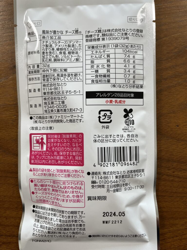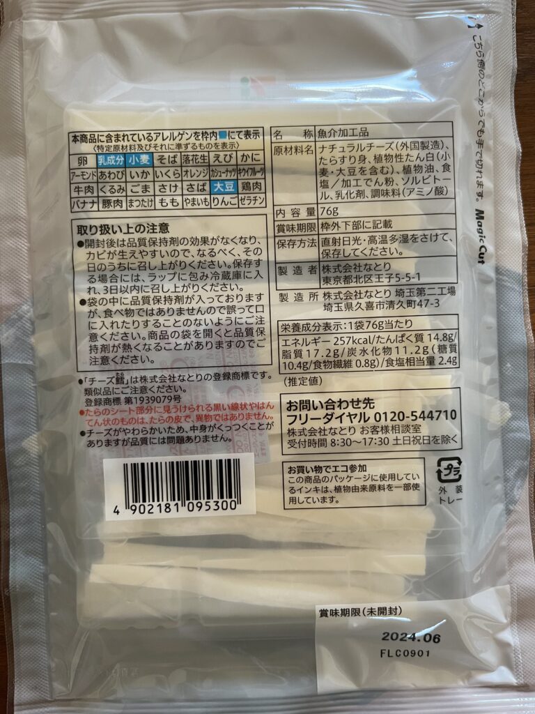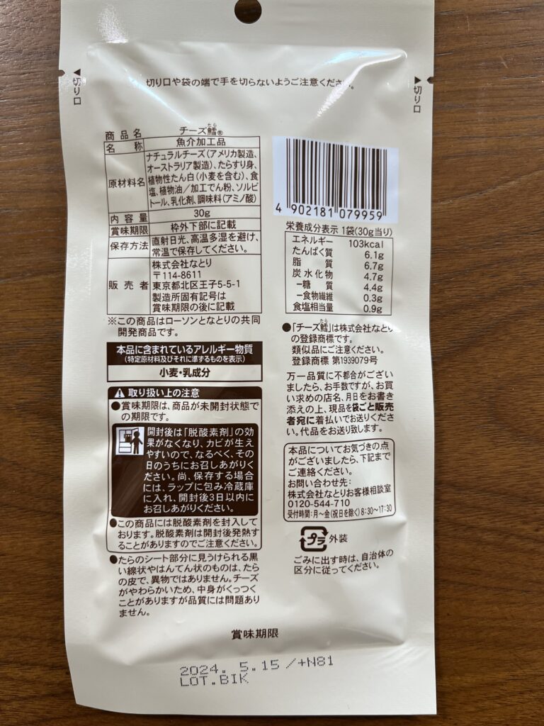 そして、「チーズ鱈は株式会社なとりの登録商標です」という文字が並び、コンビニと『なとり』の共同開発という言葉もある。