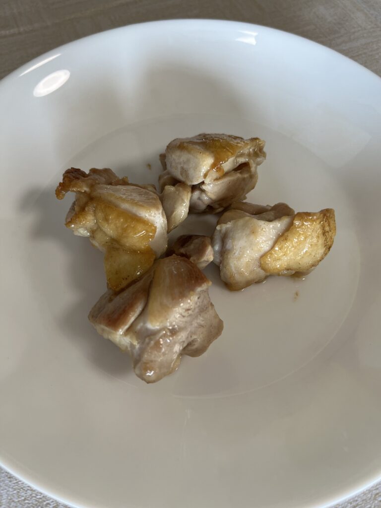 鶏もも肉(150g)をフライパンで焼いたものがこちら。