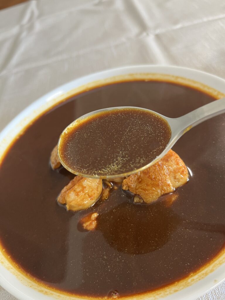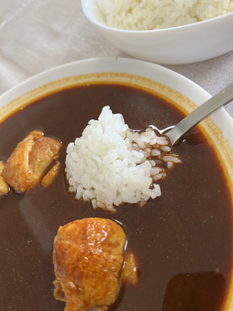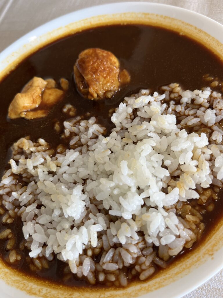 初めはご飯をスープカレースタイルで浸しながら食べるが、最終的にはいつもご飯投入スタイルになってしまう。